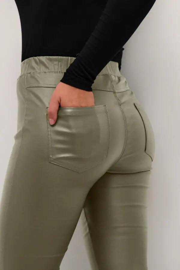 KAFFE Faux Leather Cropped Pants