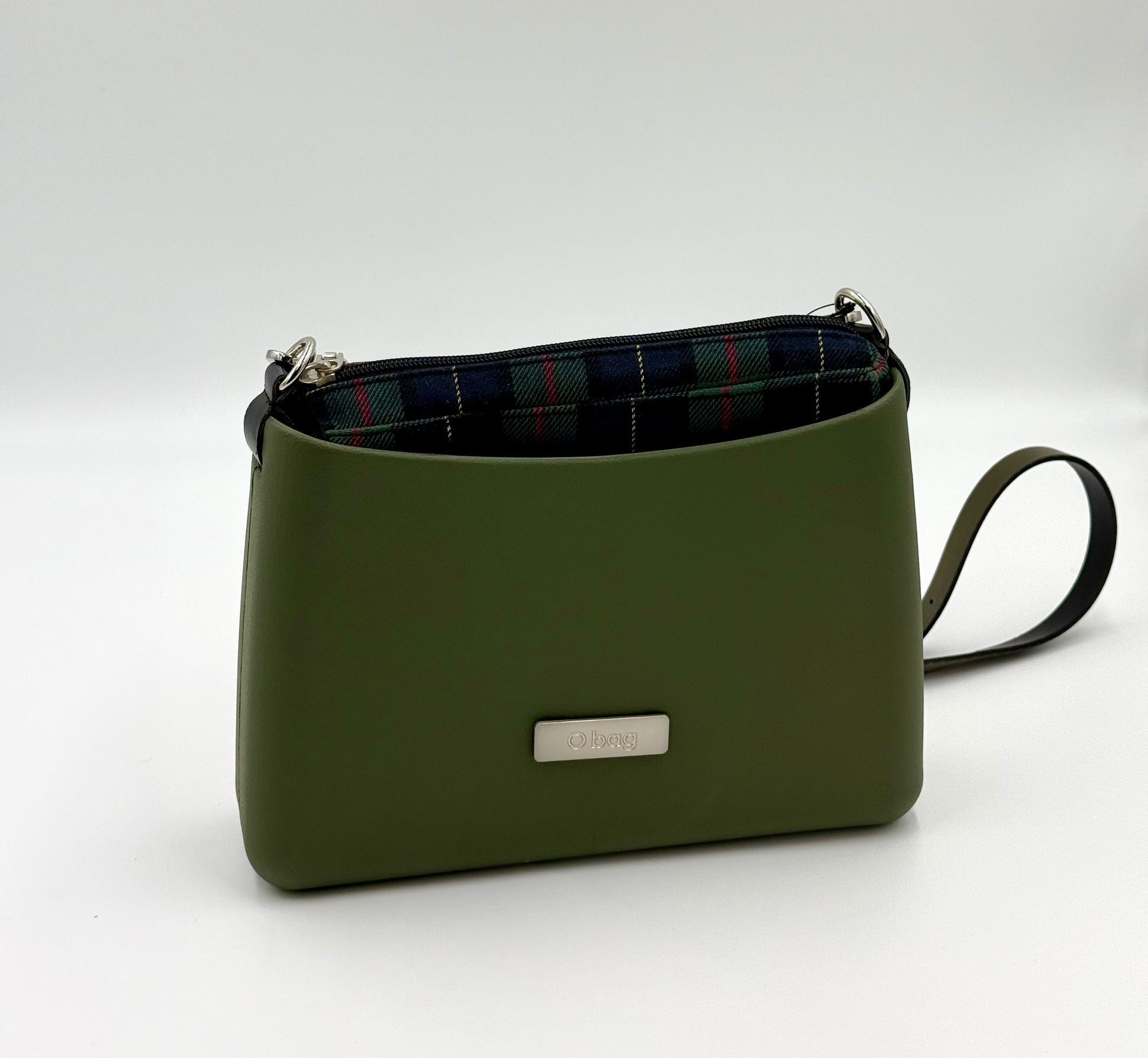 O bag Glam – olive green with zippered checkered lining