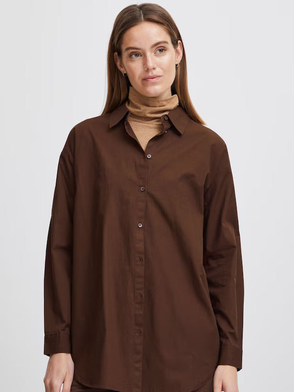 Elevate your wardrobe with the b.young BYGamze oversized tunic shirt in rich dark brown.